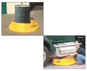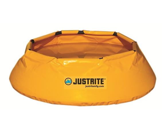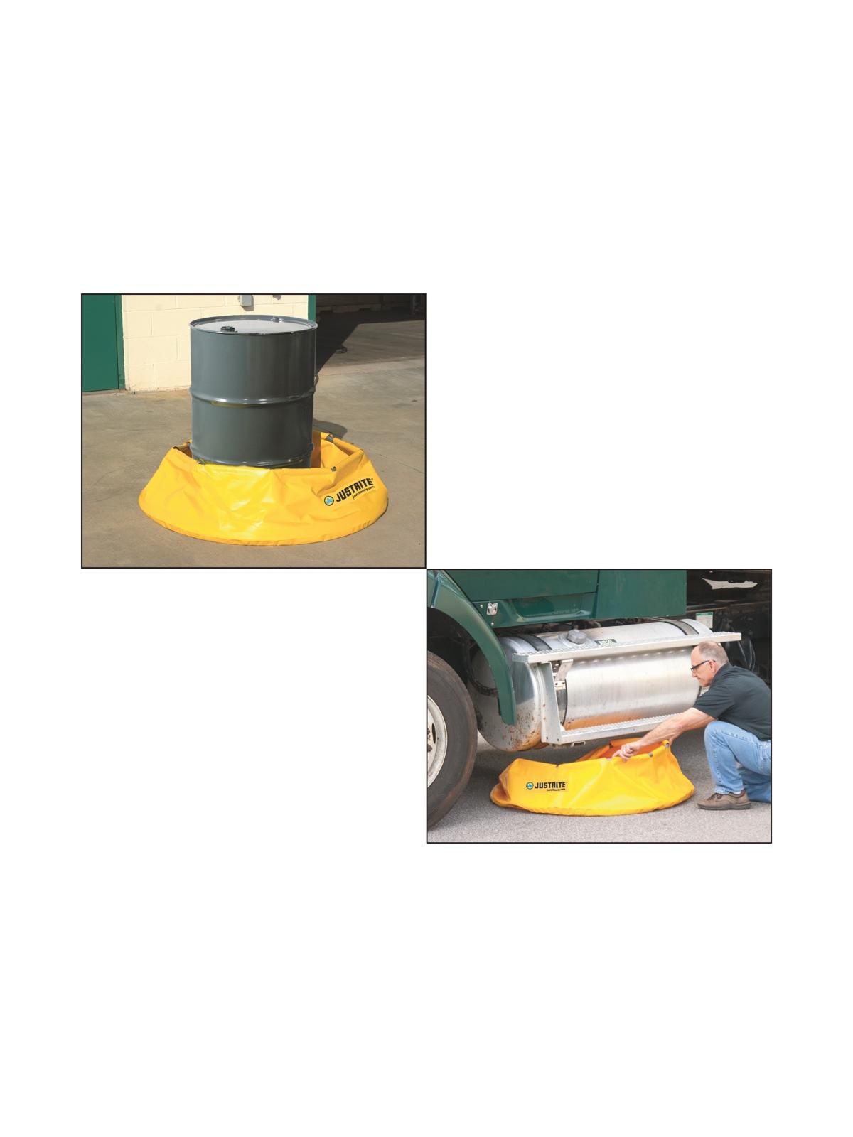 Space saving, lightweight pools contain spills from punctured saddle tanks, or leaking drums, hydraulic lines, pipes, and machinery. Pools fold tightly and stow easily in trucks or near shipping docks. To open, simply unfold and shake from foam ring top. Embedded foam top raises containment wall as fluid level increases. Durable vinyl fabric is 20% heavier than other models, providing increased abrasion resistance and more reliable seam adhesion. Helps comply with EPA and SPCC standards. FOB Shipping Point.