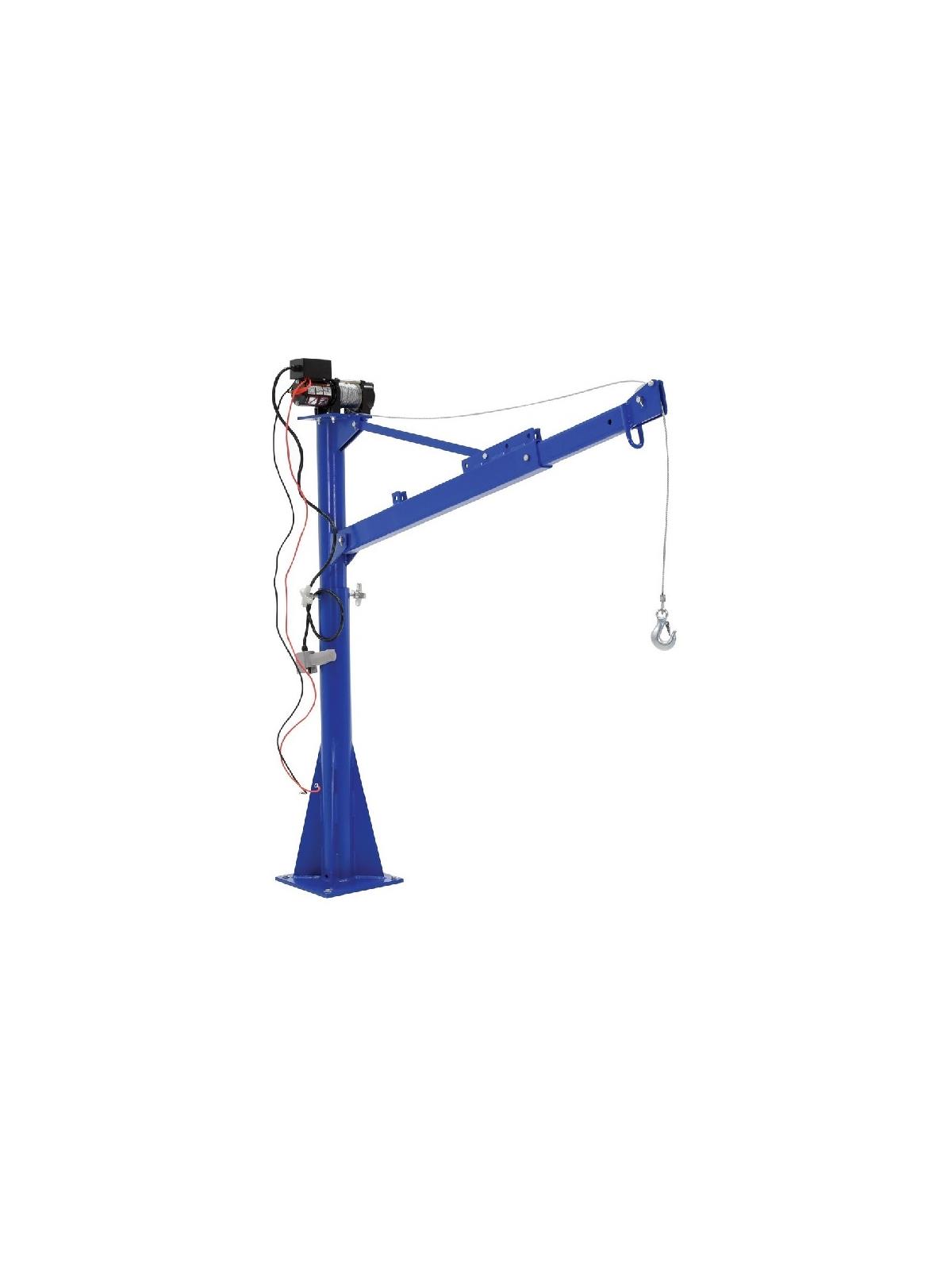 B) The economical answer to your material handling problems. Offers light duty, intermittent use. Up to 1,500 lbs. uniform capacity at 27-13/16" boom extension. 360° locking manual rotation, 25' of 7/32" cable with hook on AC units, 46' of 3/16" cable on DC units.