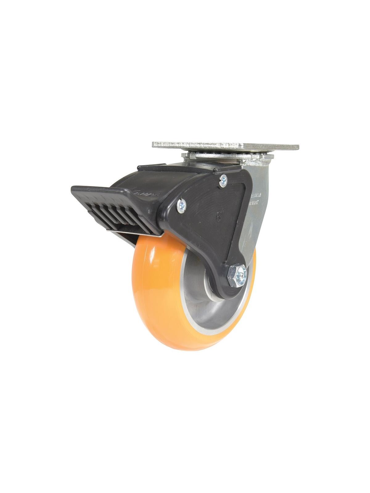 Made of exclusive proprietary donut tread. This caster comes with 6203 precision ball bearings and is bonded to a lightweight water-resistant aluminum core. The high grade elastic polyurethane reduces the force needed for movement and dampens vibrations for a smooth quiet roll. It also deflects debris, which strengthens its longevity and durability. Top plate size 4" x 4-1/2". FOB Shipping Point.