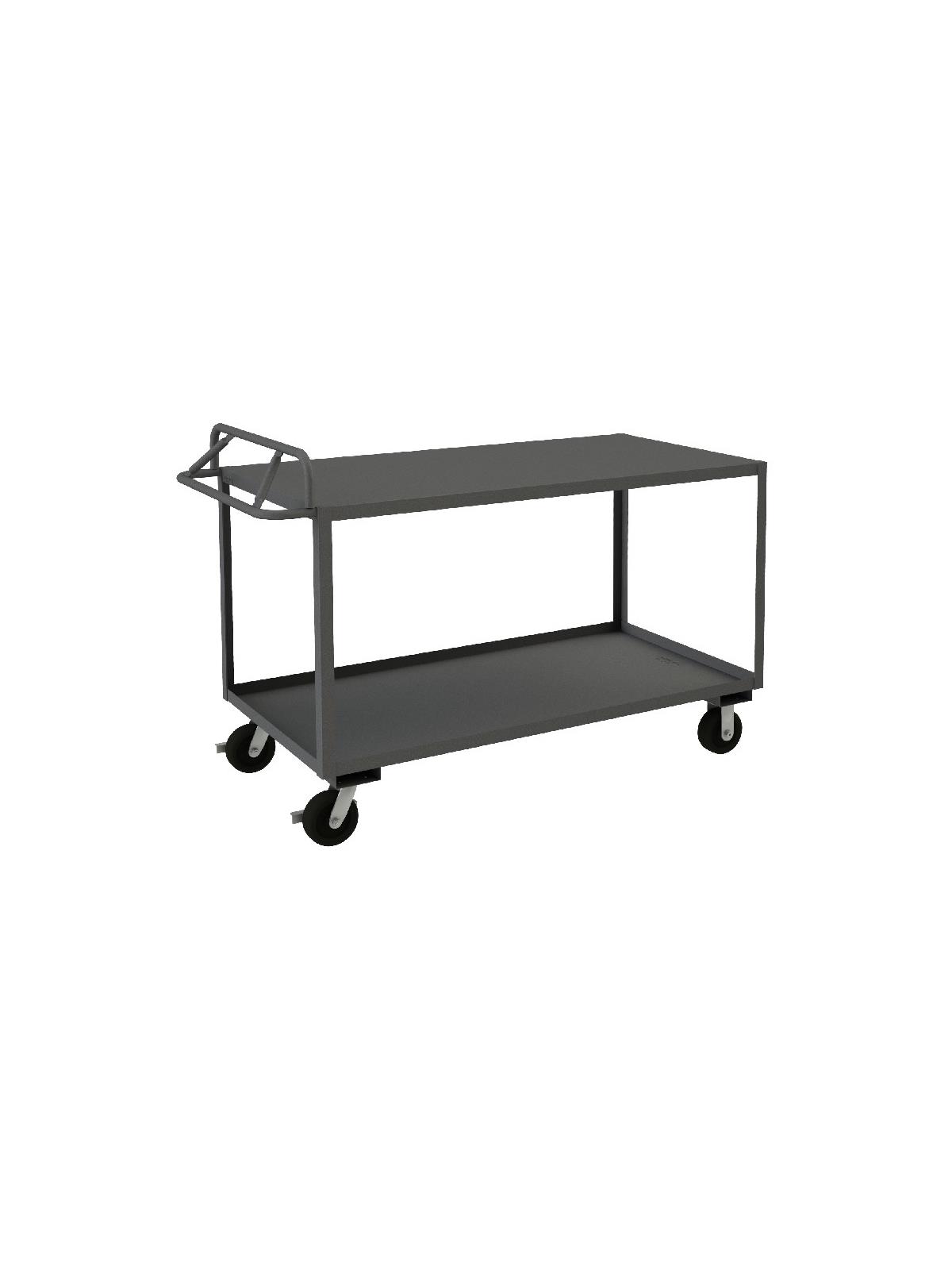 Constructed with 1-1/2" x 1/8" angle iron uprights for added strength. Heavy duty 14 gauge steel shelves. Sturdy, tubular, ergonomic handle has 3 positions ensuring maximum comfort. Standard units have 1-1/2" lips. ALD units have all lips down, TLD units have top lips down. Durable, gray, textured powder coat finish. FOB Shipping Point.