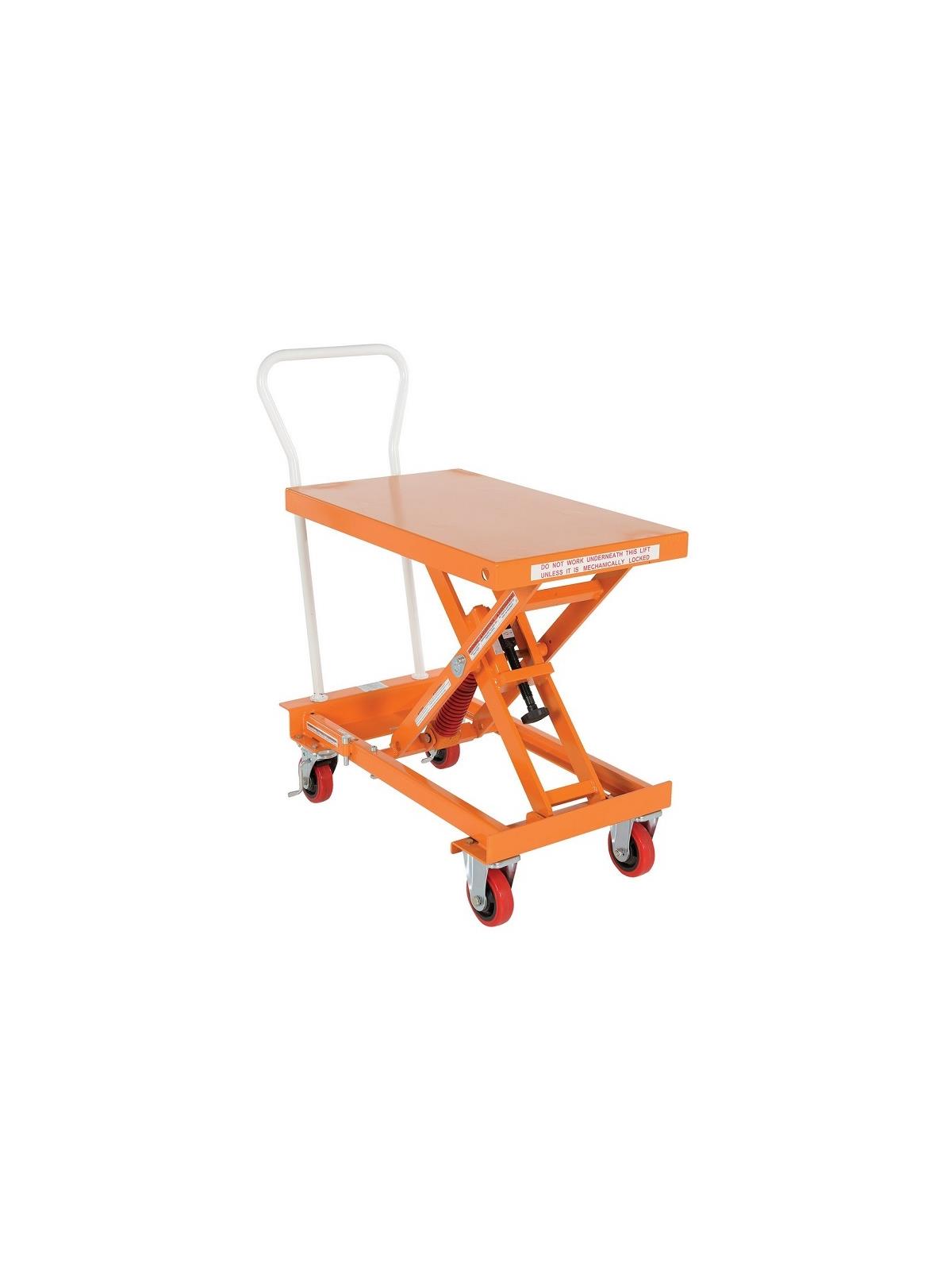 Increase efficiency while reducing potentially harmful bending or twisting motions. Easy tension adjustment for height/weight sensitivity. Removable bolt-on handles. Rolls on 5" x 1", 2 rollers rigid, 2 swivel casters with brake standard. Handles loads up to 800 lbs. FOB Shipping Point.