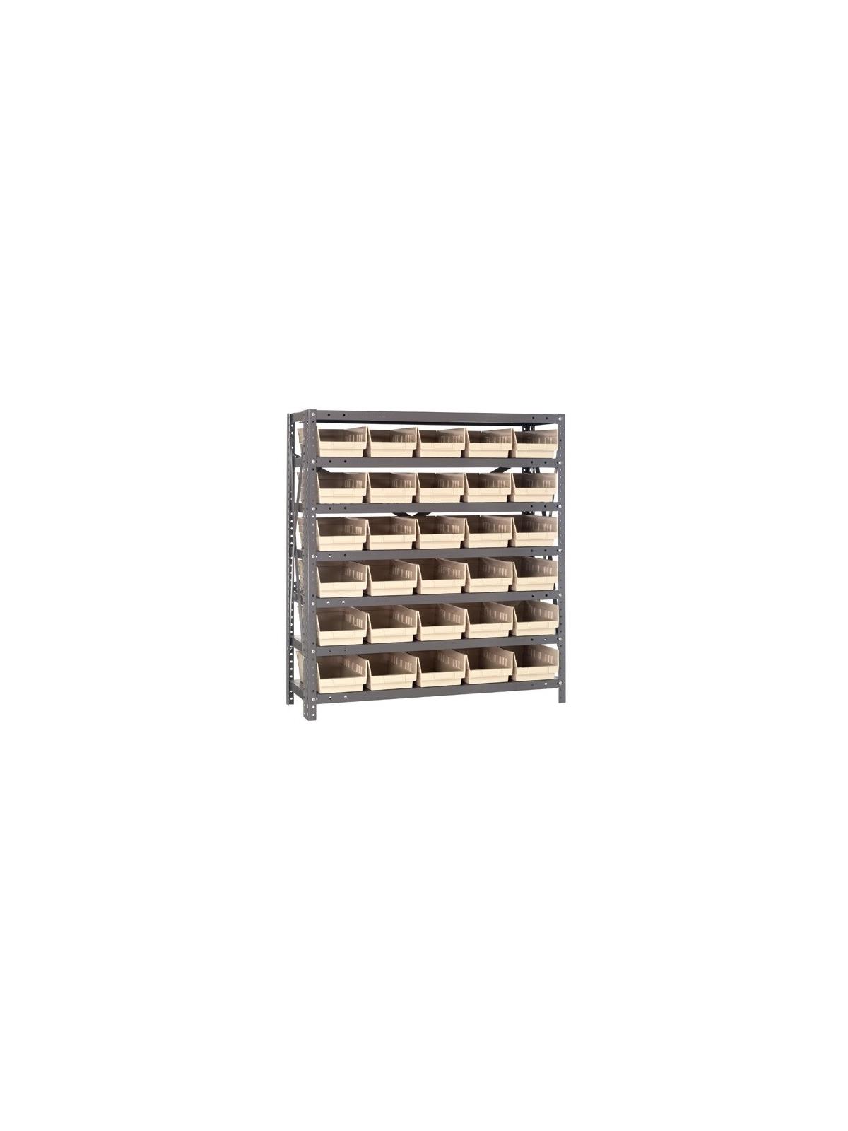 • Economical bin storage system includes durable Plastic Shelf Bins and a 36"W standard shelving.