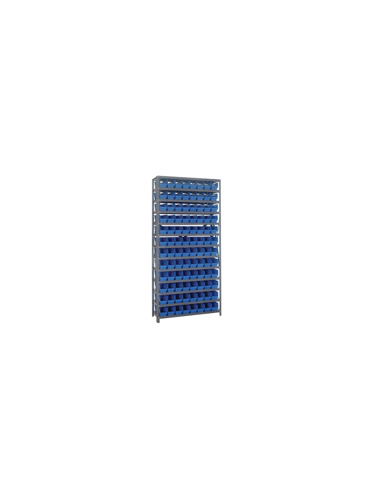 Rugged 350 lb. capacity per shelf, standard shelving unit will keep parts organized and readily accessible. Gray enamel finish will not rust or corrode. 12-HQSB100, 8-HQSB101, 5-HQSB102, 4-HQSB107, 3-HQSB109 fit across a standard 36"W x 12"D shelf. 8-HQSB103, 5-HQSB104, 4-HQSB108, 3-HQSB110 fit across a 36"W x 18"D shelf. Bins are available in Blue, Yellow, Red, Green, Ivory or Black. FOB Shipping Point.