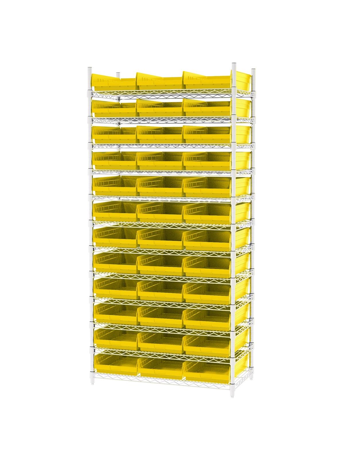 Shelf Bin Wire Systems can be configured for use with 36, 48, 60 or 96 bins providing a versatile system for storage and material handling. Durable and strong polypropylene shelf bins outlast corrugated bins. Bins available in Blue, Red, Yellow, or Semi-Clear. FOB Shipping Point.