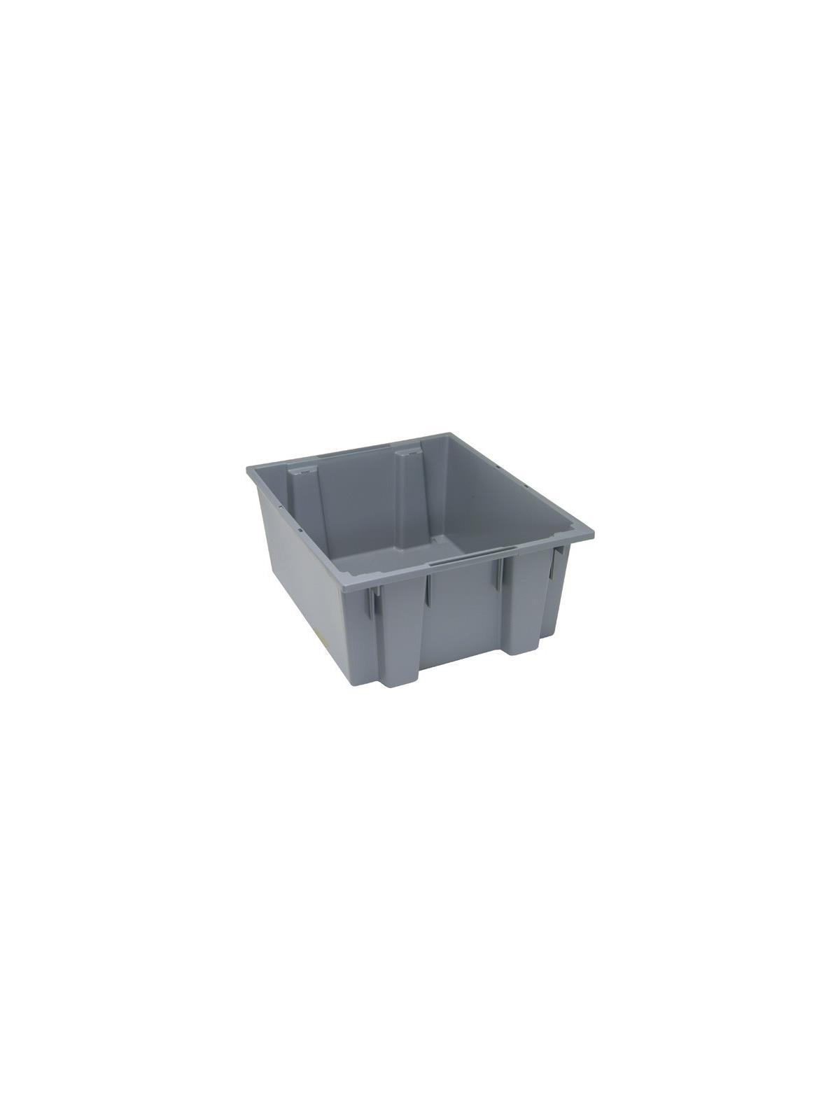 High density polypropylene, injection molded for uniform wall thickness and added strength. Lids snap tightly and securely for a safe fit. Quick 180° turn offers space-saving stacking and nesting. Stacks 6 high. Fits 48" x 40" pallets (6 SNT190, 4 SNT230 per level). Usable in temperatures from -­10° to 250°F. Available in Gray, Blue, Red or Clear. Optional clear, see-thru Stack and Nest Label Holder (HSNH010) and optional Dolly (HDLY-3018) available. FOB Shipping Point.