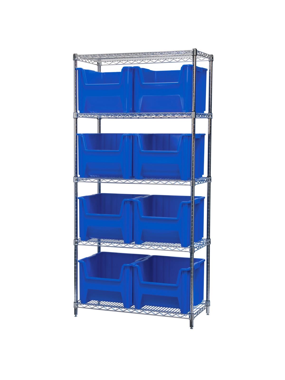 Available with shelves and come with 8, 9 or 12 bins. Bins feature a wide hopper front for easy access. Bins available in Blue, Red, or Gray. FOB Shipping Point.
