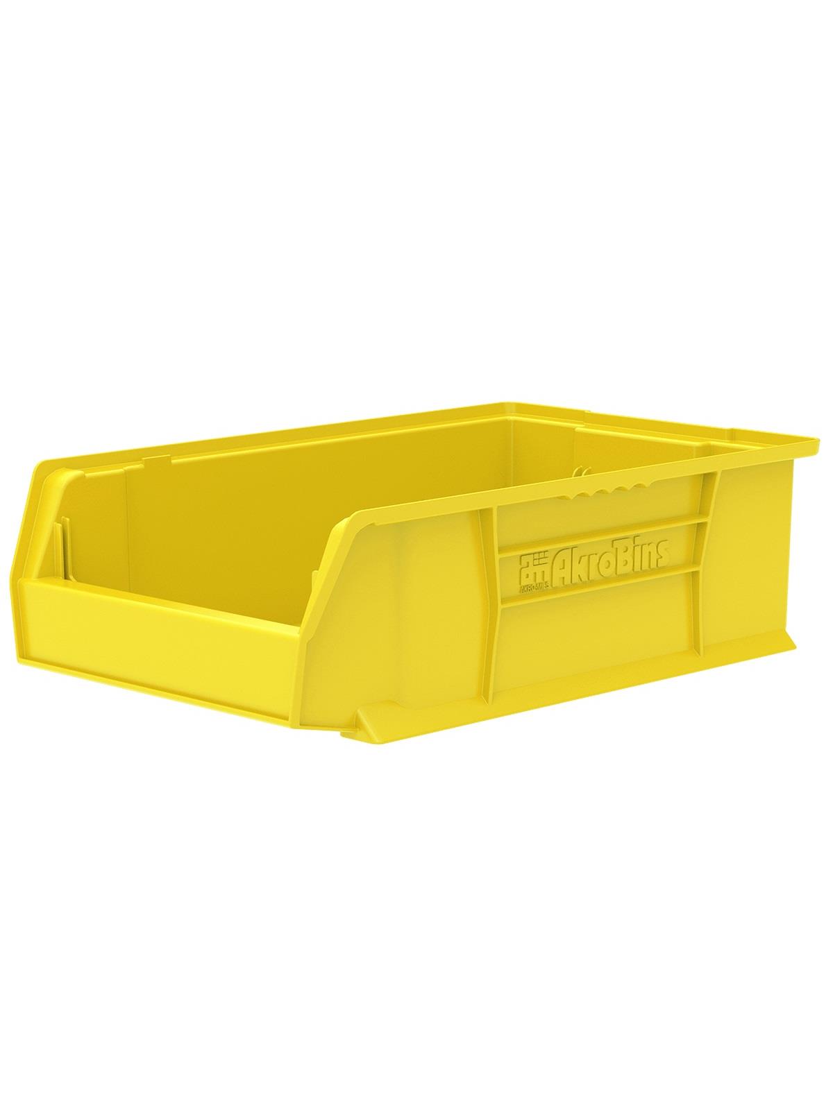 • Heavy-duty bins securely stack atop each other -- or sit on shelving.