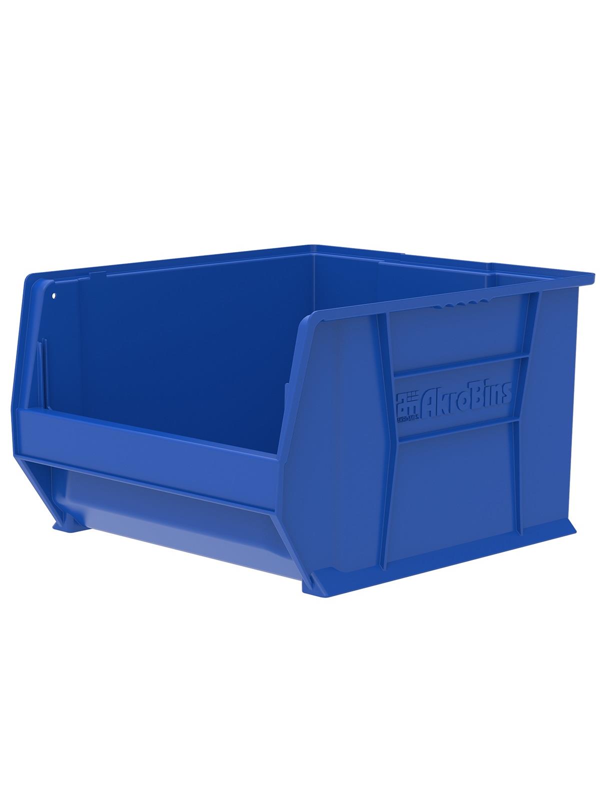 • Heavy-duty bins securely stack atop each other -- or sit on shelving.