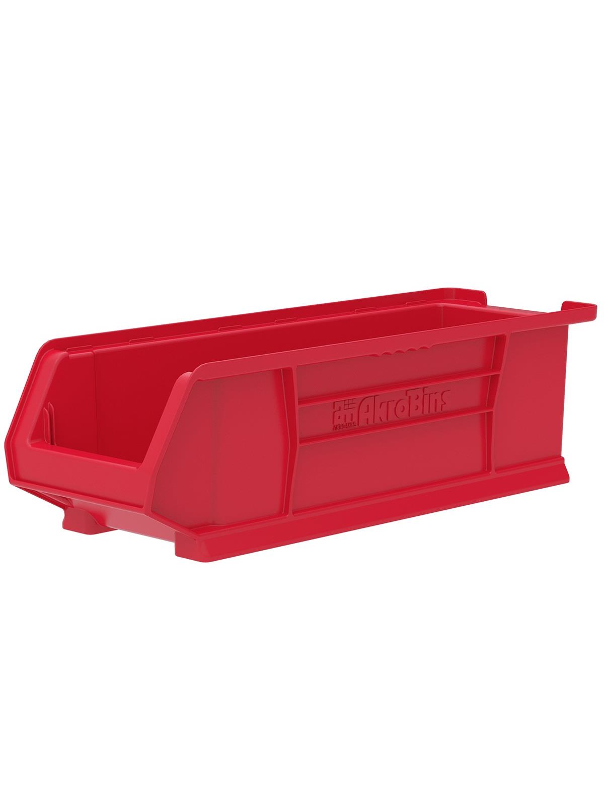 • Heavy-duty bins securely stack atop each other -- or sit on shelving.
