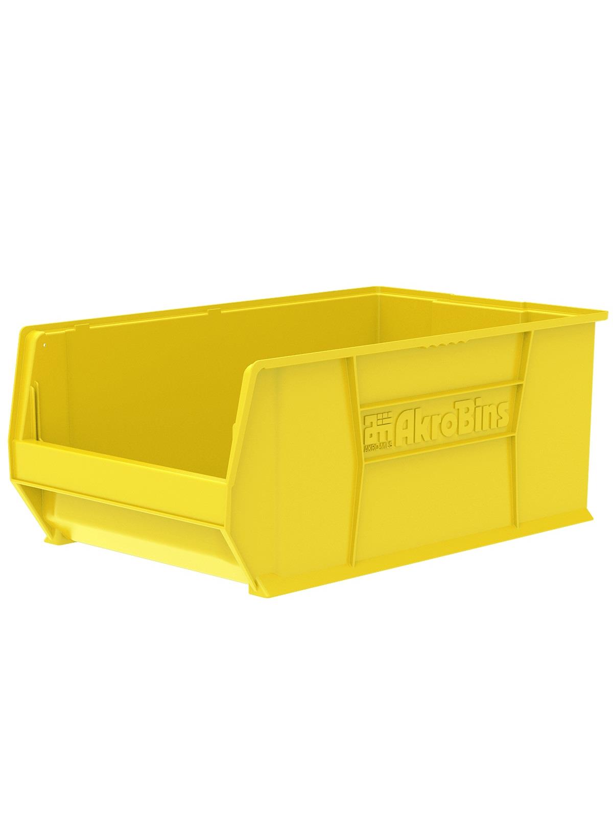 - Heavy-duty bins securely stack atop each other -- or sit on shelving.