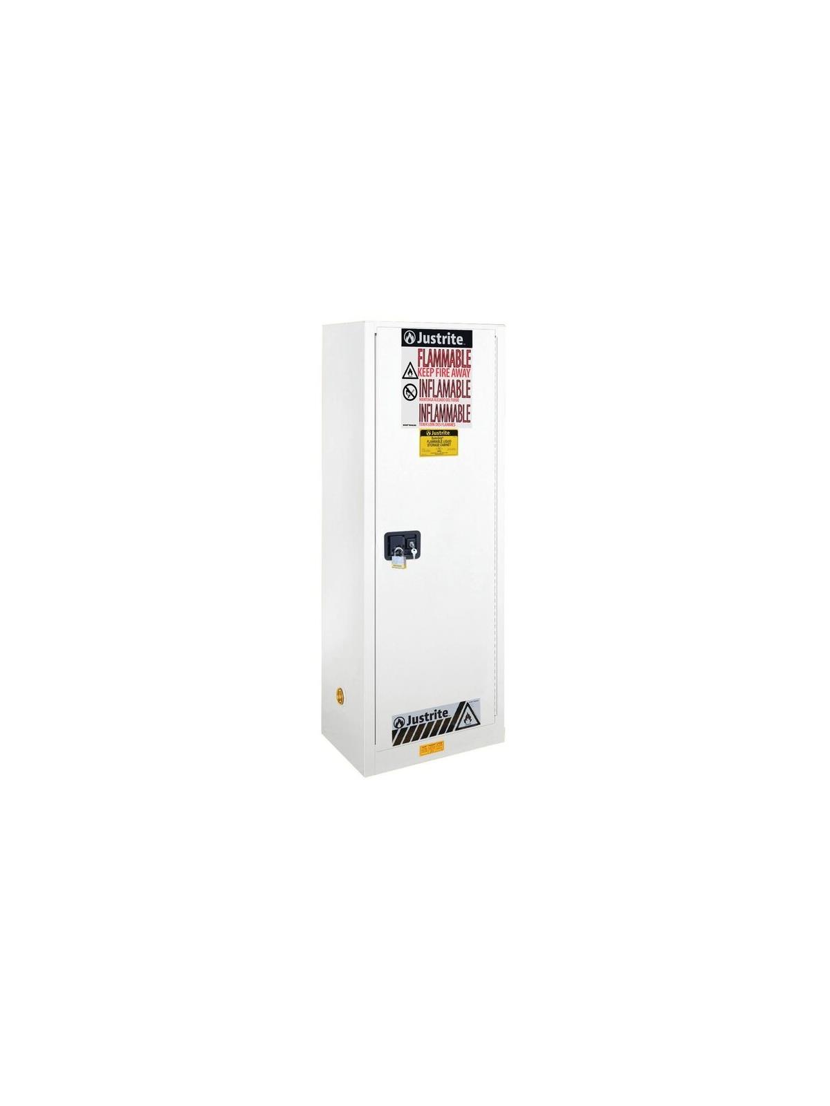 Gain valuable storage space even when floor space is tight. The Justrite Sure-Grip® EX Slimline Safety Cabinet with 1 Self Close Door (model 892225) is designed for the safe storage and segregation of flammable liquids in lab, construction, or engineering settings where floor space is limited. It fits flush alongside a 45 gal (170 L) cabinet, which makes it easy to help expand storage alongside an existing cabinet system. The cabinet's smaller footprint allows placement in labs, R&D rooms, garages, machine shops and more. FOB Shipping Point.