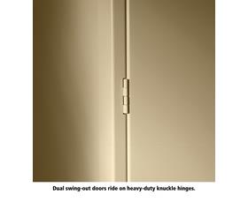 Knuckle hinges on each door insure the integrity of the cabinet and the alignment of the doors. Doors are reinforced for strength and quietness. Handle on right-hand door activates a 3-point system for added security; dummy handle on left-hand door. Shelves are adjustable in 2" increments on built-in shelf tabs. Shelves will hold up to 200 lbs. evenly distributed. Two front leveling glides compensate for uneven floors. Louvered back panel allows air circulation in the cabinet. Available in four models--storage, wardrobe, combination, and counter high cabinets. Available in Black, Champagne/Putty, Sand, Light Gray and Medium Gray. FOB Shipping Point.