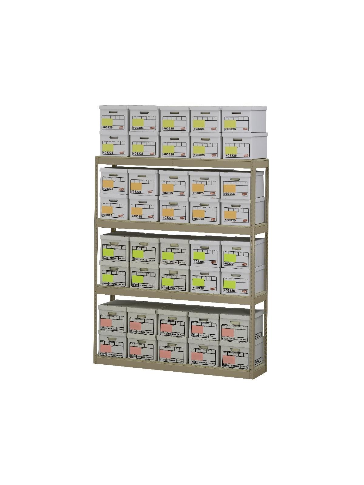 Rack is designed to hold record storage boxes for archival purposes. Fast and easy retrieval of records. Sand or Medium Gray - please specify color in comments section when ordering. FOB Shipping Point.