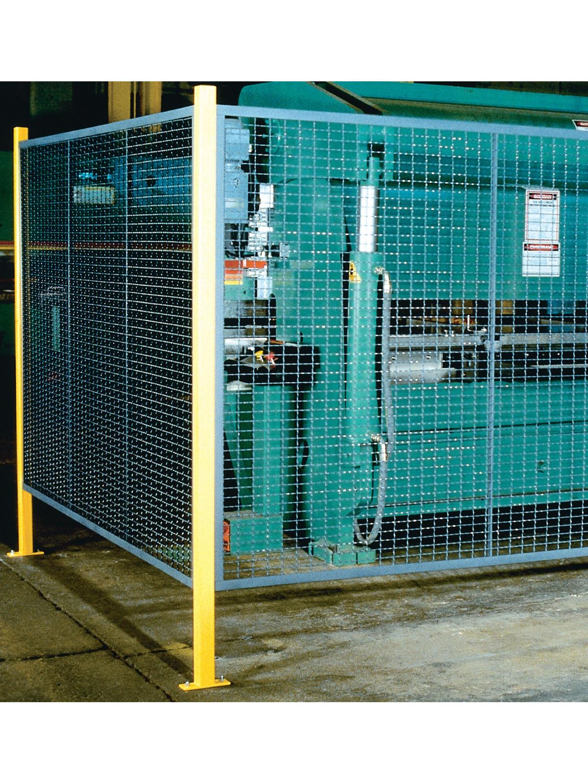 Strong, durable 2 x 1 x 10 gauge woven wire panels can be quickly installed. 8" sweep height. All hardware and floor anchors are included. Send a hand sketch of your layout, we'll do the rest. Panels are painted Dark Gray with Yellow posts. FOB Shipping Point.
