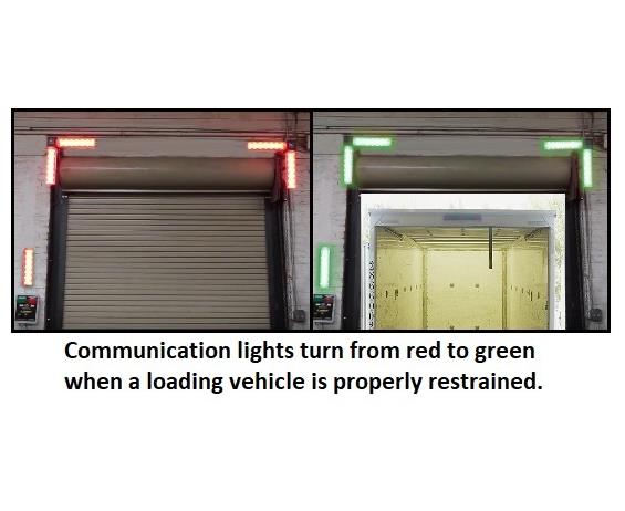 An improved LED communication system that expands Stop & Go coverage to the top of a dock door. These signal lights integrate with professionally installed dock restraint systems, changing from red to green when it is safe to enter a properly secured truck. Easily install the light set above a dock door header with the included stand-off pipe. Use with the Linear Light for full-coverage door signaling that reduces the risks of accidents. Measures 19"H. x 19"W. x 18-3/4"D. Available in 12 volt DC. FOB Shipping Point.