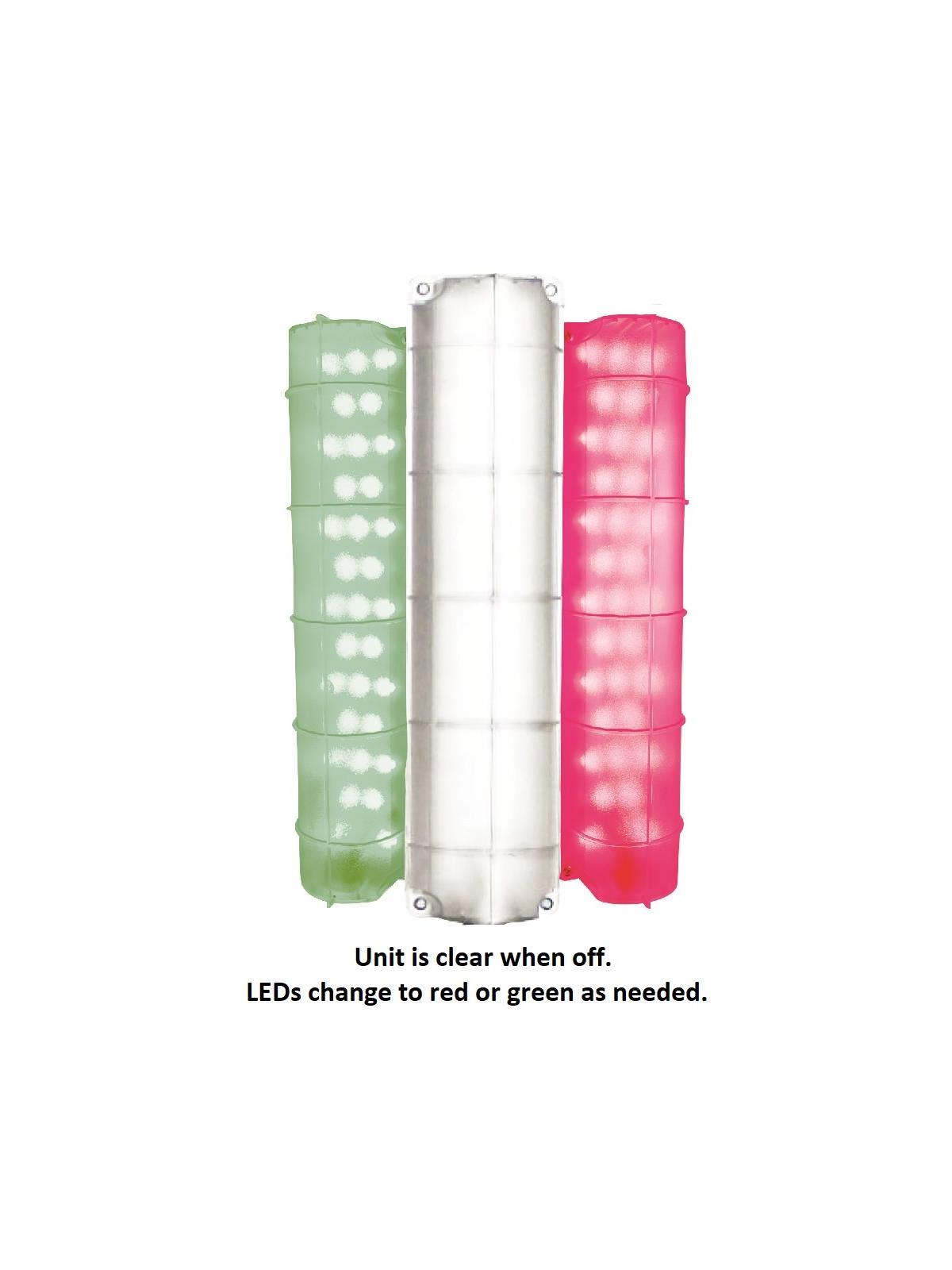 Use this narrow light inside or outside of a loading dock door. When installed outside, it fits easily between close sitting docks. Combine with the corner set for full-coverage door signaling. 33 bright LEDs switch from red to green via user supplied remote switch. Sold as a single unit. Measures 15"H. x 3-5/8"W. x 2-3/4"D. Available in 12 volt DC. FOB Shipping Point.